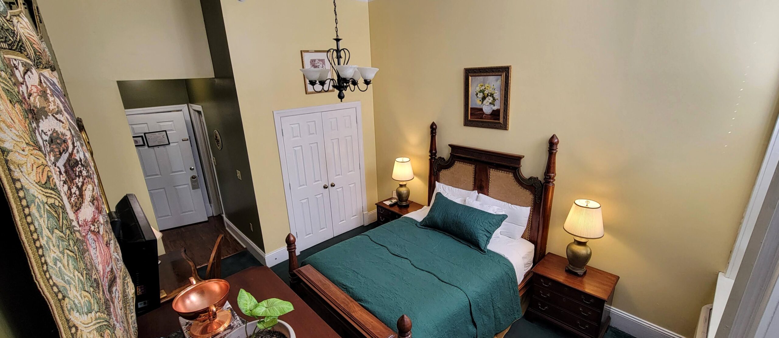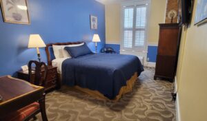 House Queen Room is our standard queen bedroom and features a single queen-sized bed and private bathroom at great value. Enjoy the high ceilings and antique furniture, along with our long list of amenities. Perfect for solo travelers, our queen rooms are inviting, quaintly attired, and, above all, comfortable. Fees apply for third guests over the age of 1 year.