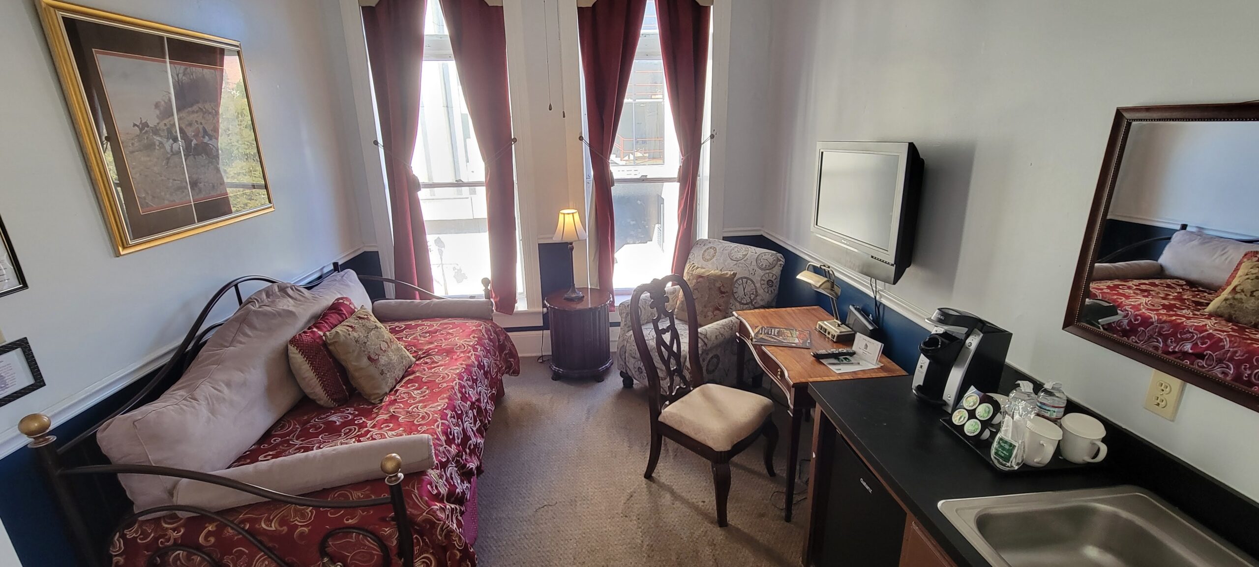 The hotel does not advertise or make any claim to any kind “ghost” or “paranormal” activity at the property. It is the opinion of ownership that these are nothing more than just stories that have been passed down. “Ghosts” are a matter of opinion and belief, and not one that every guest shares. The property has 26 rooms total and cannot promise nor guarantee a particular room number. The property makes not claim to being able to guarantee a particular room. Any information about these stories is the sole opinion of the individual, not the property or its ownership. The hotel will guarantee the room style that has been reserved and the amenities there mentioned. The hotel or its ownership make no other guarantees. The hotel will do its best to fulfill all requests made by guests but will make no guarantee to any other effect. Again, it is the opinion of the ownership that these are nothing more than just stories for entertainment purposes and those that share an opinion of “ghosts” are their own opinions and beliefs